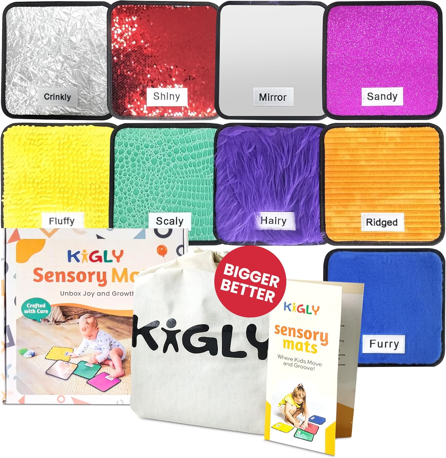 9 rainbow colored 9″x9″ sensory mats with non-slip backing. Perfect for floors and walls in classrooms, therapy rooms, and homes.